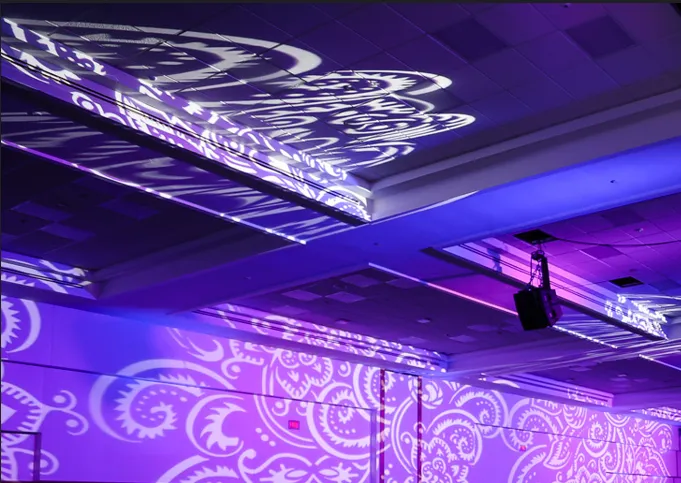 Let us decorate with images, slide shows, or videos. Our large supply of powerful projectors create limitless potential.