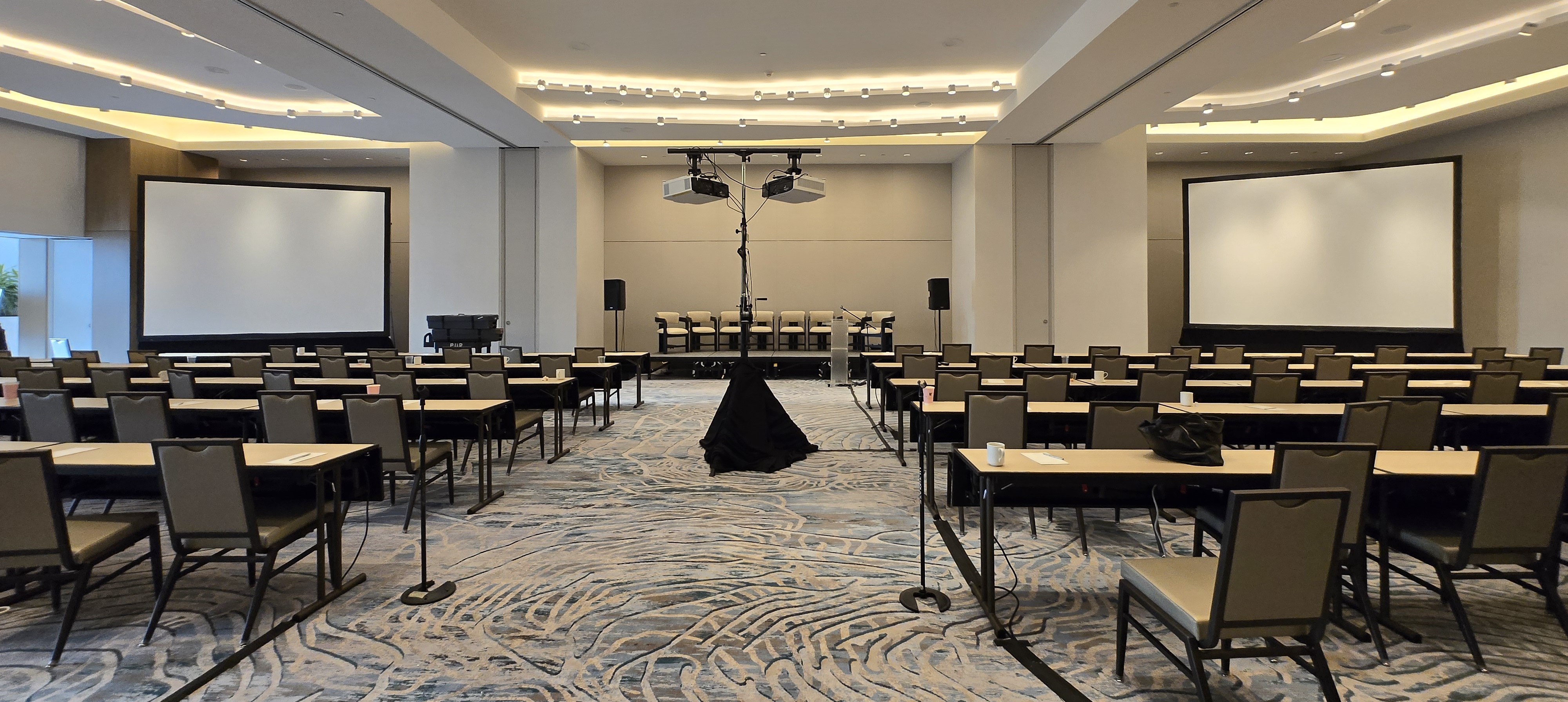 Using the hotel's in-house AV is expensive. We can achieve the same result with our portable and flexible equipment.